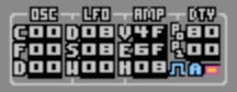 All the parameters for controlling Voice A (of this Drum Patch) are contained in that one box. The parameters are further divided into related groups and given their own headings. From the image you can see that the headings are: OSC, LFO, AMP, DTY. These groups control, respectively, the Oscillator (coarse and fine pitch offsets), Low Frequency Oscillator (pitch modulation, vibrato, arpeggio etc), Amplitude (envelope, volume, curve) and Duty (in this instance a specific setting for Voice A and B to control the duty/pulse width).