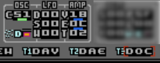 The image above shows the parameter sub-group for Voice D and also the Tx parameters. You'll see that under 3 of the parameters is a little coloured marker (like an underline) and that the placement of these markers matches the Tx parameters (DAV = voice D, amplitude, volume: DAE = voice D, Amplitude, Envelope: DOC = voice D, Oscillator, Coarse pitch).