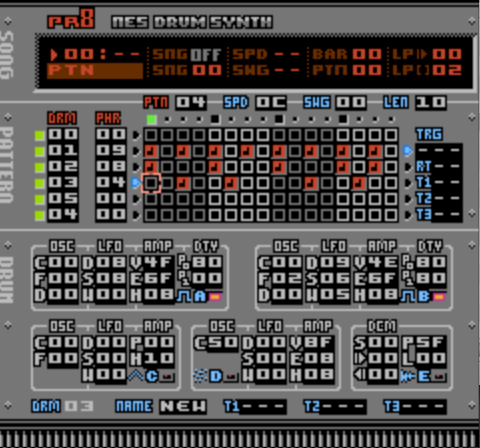 PR8 is a 6-track, pattern-based drum machine that runs on a Nintendo Entertainment System, designed and created by Neil Baldwin.