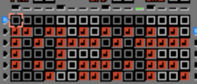 If there is a red square in a cell that means it contains a Note Trigger. Empty cells in the Grid mean that there is no data on that step of the Phrase. There are three types of Note Triggers.