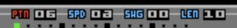 Starting at the top of the Pattern Editor are the Pattern Parameters PTN, SPD, SWG and LEN.