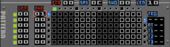 At this point, if the Pattern was playing, it'll now be silent and you're probably wondering why. What has happened is that the T1 values in the Triggers that you placed in the Pattern are overriding the AMP-H parameter on Voice A (because we just told it to) and as we previously had not used the Trigger Parameters, the values that is currently set in T1 is '00' - therefore the T1 parameter is telling PR8 to play the notes for 00 ticks i.e. silent.