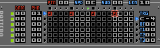 OK, for now, clean up the mess you've just made by tapping B to remove Triggers from Phrase 00 and get Track 1 back to just 4 notes (make them all C-4 again too):
