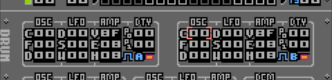 You should barely be able to hear both Pulse voices playing simultaneously now. The 'problem' we have is that both voices have exactly the same settings and are playing in unison. To make Voice B obviously more audible, go to the OSC-C parameter and by holding A and tapping UP TWICE you can shift the pitch by two octaves (should read 18 which is hexadecimal for 24). Now you can hear two voices. Experiment with this parameter('Oscillator Coarse Offset') a bit.