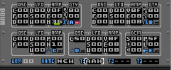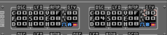 For simplicity, in the Drum we've been making (the bass sound), turn off Voice B. Then on Voice A, set the AMP parameters to 0F, 00, 36 (top-to-bottom). You can read all about the AMP parameters in the manual but what we're doing it essentially turning off the Envelope and extending the length of time that the note is held for so that in the Pattern, one note runs into the next:
