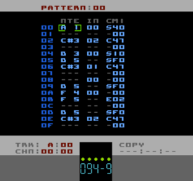 Again, pretty obvious what you put in here. One difference between Pulsar and LSDJ is that Pulsar doesn't require an Instrument number on each note. Instead, once an Instrument is specified it will remain in use on that Track until a new one is set.